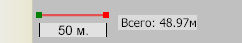 Скорей всего, неточно измеряется расстояние. Длина линейки может быть неточной лишь из-за округления количества пикселей, например, если разрешение указано 0,69 м/пикс, то в 50 м должно быть 72,463768115942028985507246376812 пикселя, а реально их 72, то есть расстояние будет не 50 м, а 49,68 м. На скриншоте ошибка явно больше, правда, там не указано разрешение, может, оно не 0,69 м/пикс. |