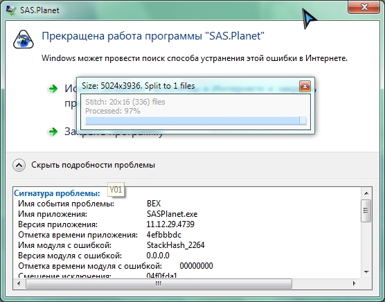 Я имел в виду файлик *.elf (если он генерируется) от дебажной версии (SASPlanet.Debug.exe). У меня этот баг не воспроизводится - склейка завершается нормально. |