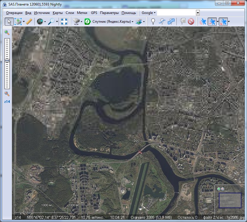 | Description | Загруженные тайлы отображаются\не отображаются без видимой закономерности, нетронутыми остаются столбцы и области на каждом зуме по-своему. Счётчик загрузки проходит, но загруженное не отображается. При зуме туда-сюда счётчик мегабайтов растёт (хотя выставлено интернет+кэш), и на экране ничего не меняется. | ||||||||