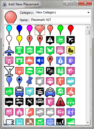 Также неквадратные иконки некорректно масштабируются в окне выбора иконок и на карте. См. скриншот. Сделал для пробы иконку с градиентом размером 39х64. В левом верхнем углу она обрезана (увеличена до 64 по горизонтали), в окне выбора расползлась (ресайз до 32х32 без сохранения aspect ratio), на карте получилась слишком большая (32 по горизонтали, а не по вертикали). Надо во всех случаях ресайзить так, чтобы вся картинка помещалась в нужный квадрат без искажений. |
