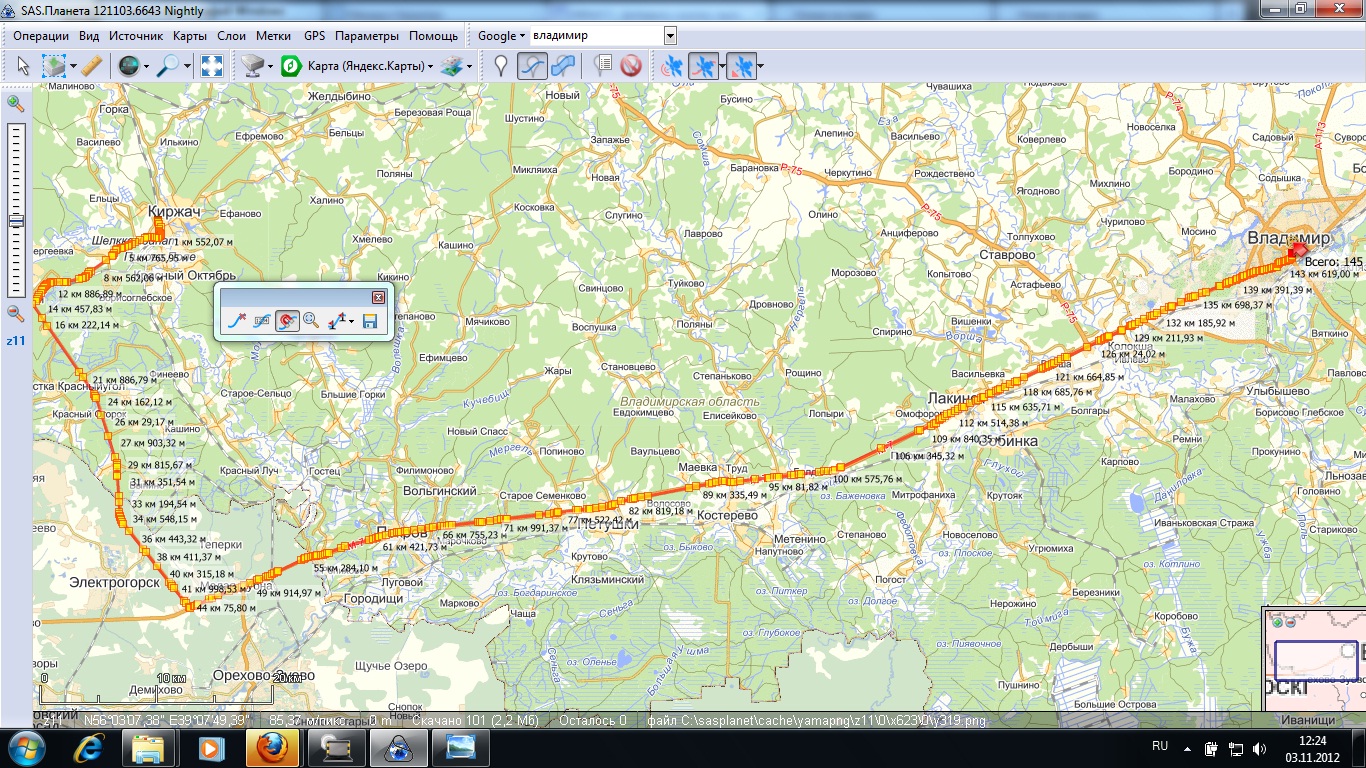 | 05-11-2012 08:33 | vdemidov | Summary | Добавить кнопку выпадающего меню с выбором типа отображения расстояния... => Возможность настройки отображения промежуточных расстояний при редактировании путей |