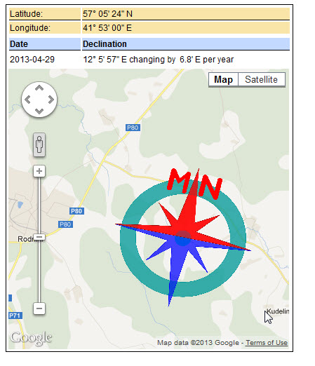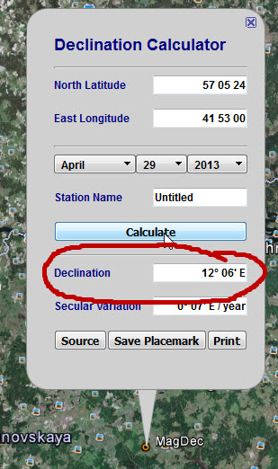 Также kml отправляет за подробными данными вот по этому сгенерированному URL http://www.ngdc.noaa.gov/geomag-web/calculators/calculateDeclination?lat1=56+35+34&lon1=41+21+01&startYear=2013&startMonth=5&startDay=8&resultFormat=html на стартовой страничке видно, http://www.ngdc.noaa.gov/geomag-web/#declination что результат можно сохранять в виде resultFormat= (один из форматов: HTML XML CSV PDF) |