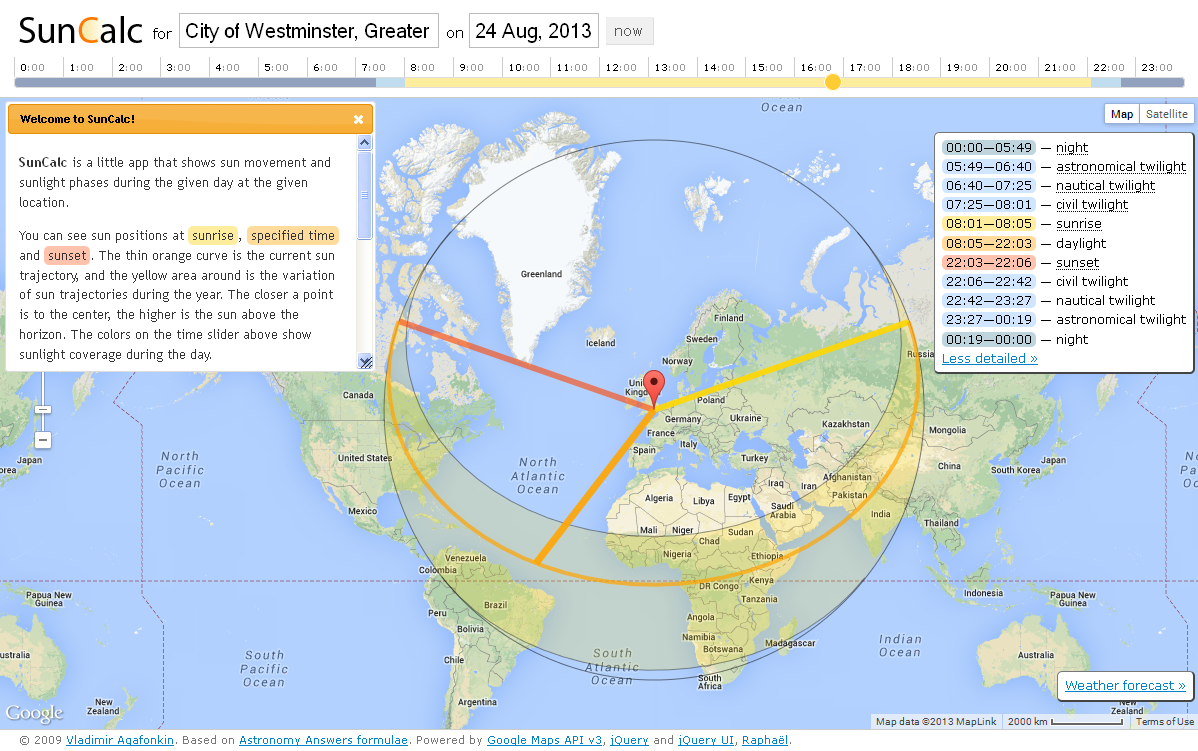 Оно там на яве написано, можно скриптик взять. Или даже с автором связаться: © 2009 Vladimir Agafonkin. Based on Astronomy Answers formulae. I live in Kiev, Ukraine. Also known under Mourner nickname. Always glad to new acquaintances. Contact me: [email protected] Skype: agafonkin |