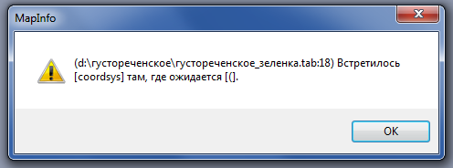 | Description | Операции с выделенной область/склеить, создаем файл привязи .tab файл привязки создается, однако при попытке открыть файл в MapInfo 11.5 выдает ошибку см.вложение.