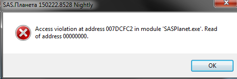 Происходило на sas.maps\Google\GoogleSat.zmp В тот момент у меня постоянно были проблемы с провайдером. Интернет мог пропадать на некоторое время. Именно с этим я связываю вылеты. Сейчас ошибка не повторяется. |