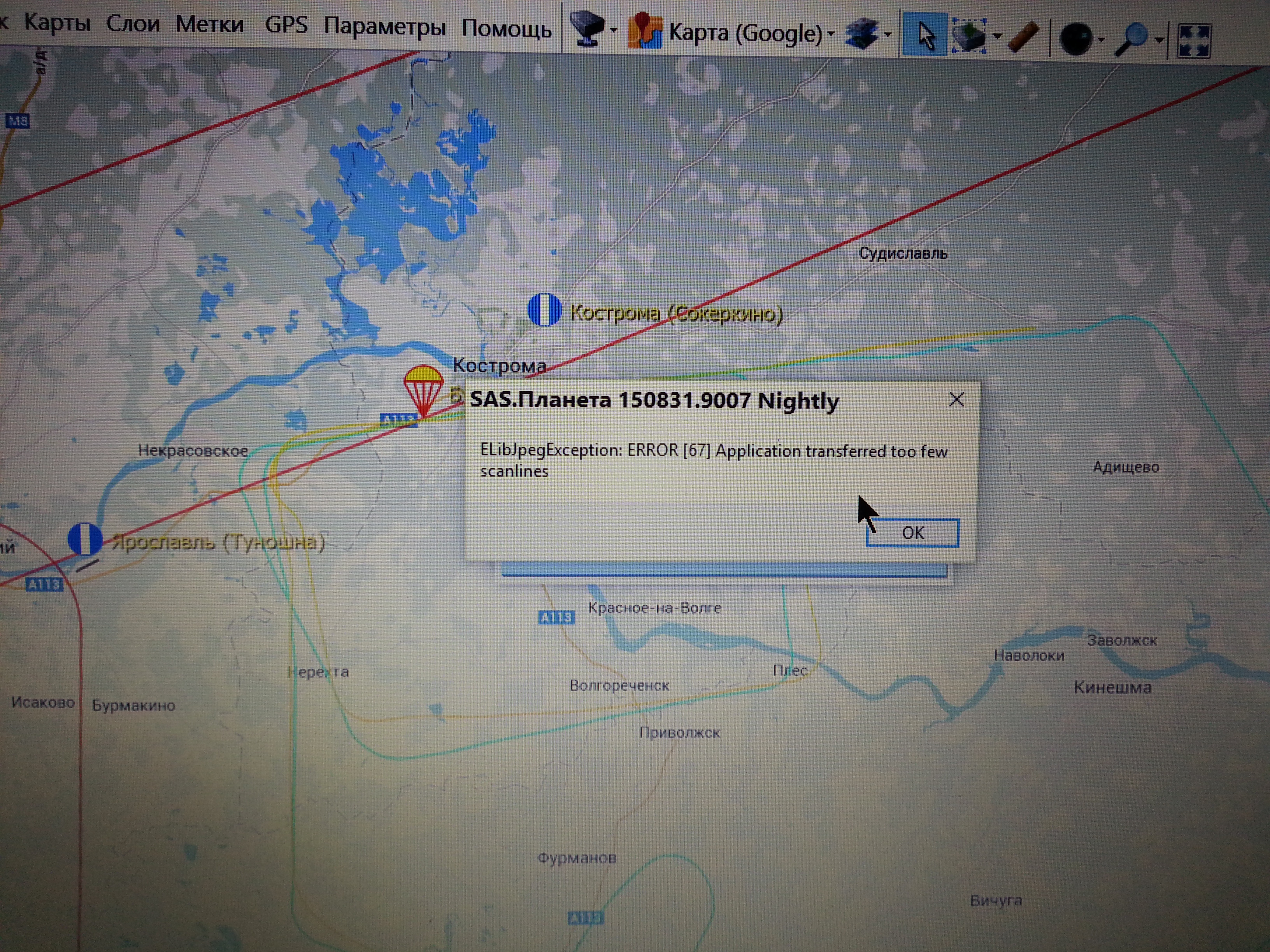 Конкретнее, пожалуйста. Какой формат, какое выделение, какие настройки склейки, какие карты, какой формат кэша, какая версия программы? Скачайте ночную, запустите SASPlanet.Debug.exe и прицепите сюда elf-файл, если он создастся. |