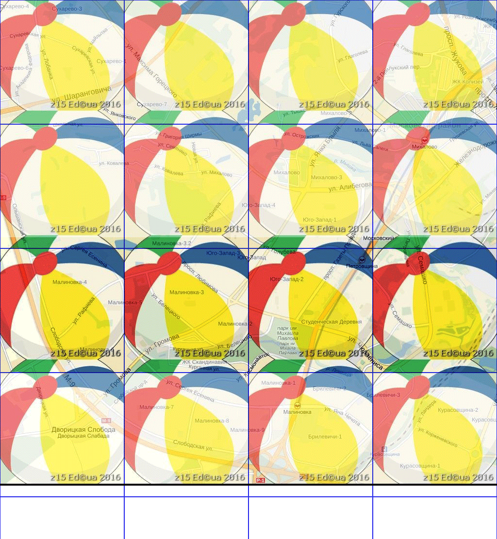 | Additional Information | http://www.sasgis.org/forum/viewtopic.php?p=41899#p41899 http://xt.ht/phpbbhttp://xt.ht/phpbb/viewtopic.php?p=694639&sid=b90284bcf788855d8be1121419d800e4#p694639 В выделенке Z13 пометил тайлы, красным получились границы тайлов меркатор. Сделал экспорт в .rmp с включенным Don't transform tiles to Geographic projection. Разобрал .rmp и собрал пазлы. Синим границы новой нарезки, не совпали с оригинальными (красным). Выделил область побольше, уровень "поглубже". Повторил предыдущее. С уровня z15 получилось два контейнера .a00. В одном 153 (9х17) а в другом 34 (2х17). Теперь если следовать автору RMP Creator: "В RMP весь мир образно порезан на тайлы 256х256 пикселей" и принять за основу сетки тайлов RMP в которую вписались тайлы с первого контейнера (9х17)а потом попытаться наложить тайлы со второго контейнера (2х17) то увидим следующее: -Непопадание границ тайлов с второго контейнера в сетку первого свидетельствует что в RMP нет строгой географической привязки тайлов к какай либо постоянной сетки. Из SAS в одну операцию экспорта мы получили для одной выделенной области одного уровня (z15) две различные разкладки(сетки) тайлов из которых кстати формируется один цельный GPS-растр. | ||||||||
