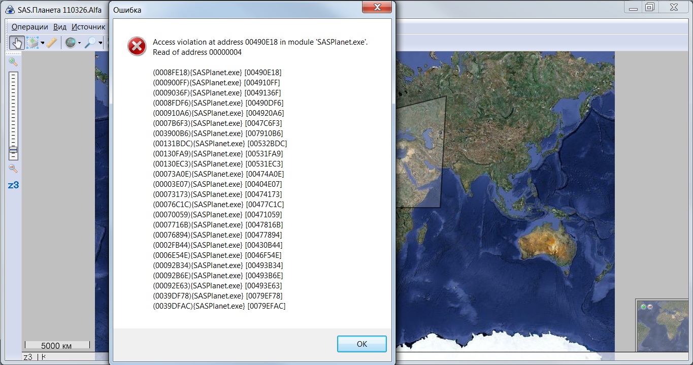Просто на всякий случай проверьте в последней альфе, если будет ошибка, попробуйте скачать https://bitbucket.org/vdemidov/sas.planet/downloads/SASPlanet.110326.Alfa.Debug.rar и выложить стек, который оно будет при ошибке выдавать. |