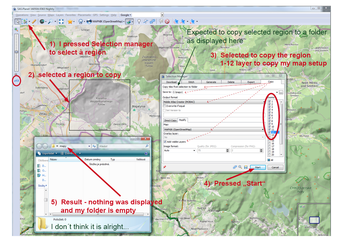 Be serious :) I select region, press copy and select zoom levels to copy then nothing is in my selected folder - do you really think it is a feature? |