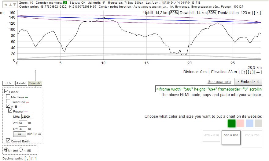 | Additional Information | Сайт: http://www.geocontext.org/publ/2010/04/profiler/ru/ Ссылка с параметрами: http://www.geocontext.org/publ/2010/04/profiler/ru/?topo_ha=20160613702656520&ab=1&m=1&t=1&c=1&f=18000-50-70-m Описание с сайта: "Как создать топографический профиль рельефа? Сброс Найти интересующую Вас область на карте Выберите курсором мин. 2 балла (макс. 300) Готовые – сайт профиля будут созданы за считанные секунды Добавить диаграмму на вашем сайте Скопируйте и сохраните ссылку на диаграмме Добавить маршрут на карте Программа Geocontext-Profiler позволяет сделать топографические профили в любой точке мира, включая дно морей и океанов. Может быть широко использован: в науке (геоморфология, гидрография), в учебных целях и туризма – планирование походов, езды на велосипеде, на машине. В рамках программы, можно найти некоторые дополнительные опции, которые позволяют создавать профиль вдоль дороги, велосипедных и пешеходных дорожек, и измерения угла наклона. Программа может импортировать файлы KML, KMZ и GPX от приемников GPS. Для учебных целей заранее запрограммированных профилей интересные географические особенности, например: самый высокий пик Земли или наибольшее глубины океана." | ||||||||