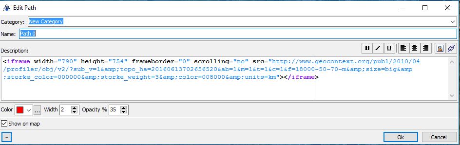 | Description | Прошу добавить возможность построения профиля по линии/маршруту (на подобие построения маршрута). Есть ресурс, который отдает эти данные по вводу от 2-х до 300 точек (думаю, что это ограничение можно будет обойти, если дробить один запрос на несколько). Данные отдаются в формате для встраивания на сайт, т.е. можно попробовать это встроить в свойства полилинии. | ||||||||