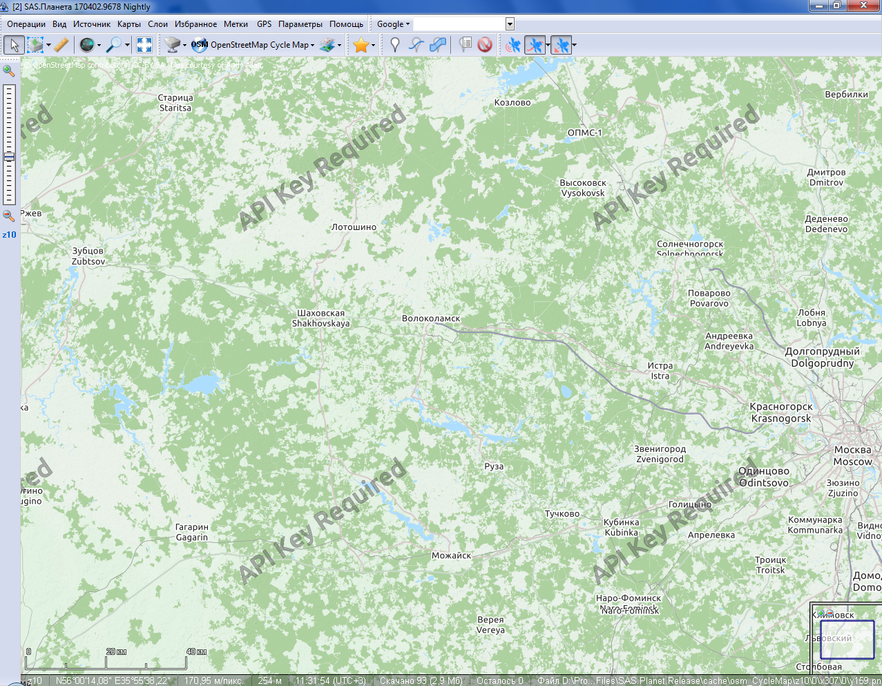 | Description | На карте OSM Cycle Map появляются водяные знаки Api Key Required. Появляются при загрузке тайлов с сервера. В кэше осталось всё нормально. | ||||||||||||