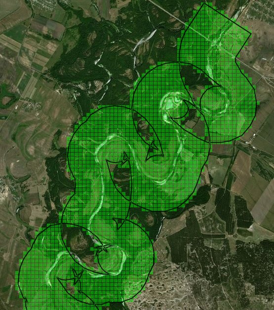 | Steps To Reproduce | Создаем или берем из навигатора трек, полученный после прохода узкой извилистой речки длиной несколько десятков км, повторяющий все ее изгибы. Из контекстного меню трека включаем автопостроение области разумного размера, например с параметром Radius=500м.