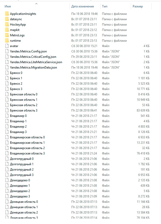 | Additional Information | Вкладываю 4 скрина. 1 - содержимое папки ru.yandex.yandexmaps (ЯКарты для Андроид) 2 - содержимое папки driving, вложенной в папку ru.yandex.yandexmaps 3 - содержимое папки search, вложенной в папку ru.yandex.yandexmaps 4 - содержимое папки ЯКарт для Windows 10 | ||||||||||||