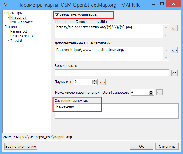 > В папке с этой картой нет скрипта для скачивания Эта карта работает без скрипта, через шаблон в url. > Как проверить, что везде выставлена настройка скачивать из Интернета? В настройках карты должно быть разрешено скачивание, а в настройках программы выбран режим "Интернет" или "Интернет и Кэш". У меня эта карта работает, так что проблема не в zmp. |