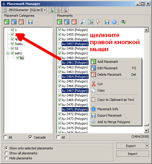 | Description | I have 3000+ polygons in my database. I need to sort them. labeling them individually is lengthy! explanation "labeling inactive.jpg" marking is performed with "CTRL + left mouse button". when they are marked this way, I simply drag them to the desired category. I would ask to add "select all unmarked" to the context menu. with one click marks e.g. 60 polygons and I'll just move them. I can use this option for other database entries in the future. -------------------------------- for supplementation only. if this is not possible, ignore the below the second sorting option is via polygon tools in conjunction with Placemark Manager. I have a large polygon that is divided into 60 polygons. it could be done that with the help of this large polygon (mark/move) all small polygons from inside the borders to the desired category. thanks | ||||||||