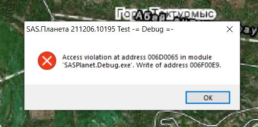 Может дело в слоях или спутнике? На скрине координаты местности и выбранные слои и спутник. Достаточно там поводить мышью и гарантированно получишь ошибку. |