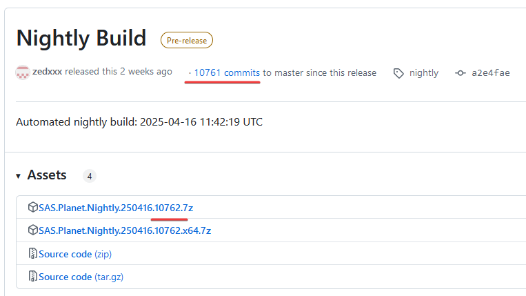 В git репозитории с сорцами SAS пришлось добавить тег nightly, т.к. гитхабу в обязательном порядке нужен тег для (пре-)релиза. Тег установлен на самый первый коммит в репозитории, но сама сборка происходит как всегда, для самого последнего коммита. В гите нельзя "двигать" теги между коммитами без серьёзных последствий, поэтому будет такой статический фейковый тег для технических нужд. Самая последняя ночная сборка будет находиться вот по этой постоянной ссылке: https://github.com/sasgis/sas.planet.src/releases/tag/nightly Архива ночных сборок на гитхабе не будет. |