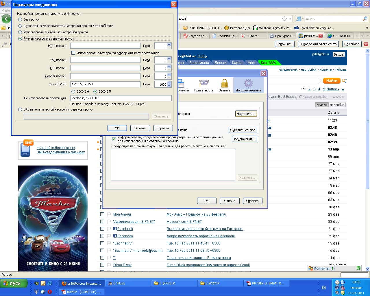 Приложил скрины из которых очевидно что IE и "лиса" инет качает, так вот по совету доброго человека "vdemidov" попробовал забить эти настройки в IE и поставить в SAS галку "брать настройки из реестра" и ЗАРАБОТАЛО!при этом НИЧЕГО! не изменялось в настройках сети, фаервола, и тд. и тп. И вот как теперь это понимать? :))))))) |
