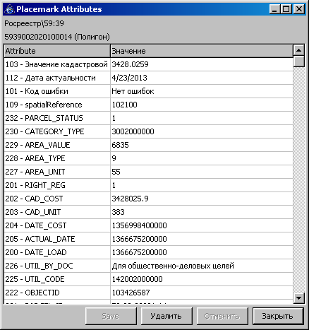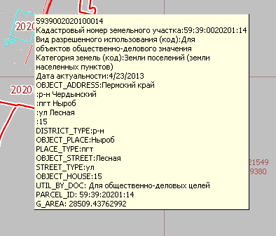 По пункту 4 в разделе б) - допилил импорт полигонов из росреестра, чтобы он нюхал доступные для полигонов атрибуты меток и либо вообще не добавлял параметр никуда, либо в описание, либо в атрибуты меток, либо в оба места. После возможной настройки справочника атрибутов в описании остаётся только нужное, например вот это: Кадастровый номер земельного участка:59:39:0020201:14 Вид разрешенного использования (код):Для объектов общественно-делового значения Категория земель (код):Земли поселений (земли населенных пунктов) Дата актуальности:4/23/2013 OBJECT_ADDRESS:Пермский край :р-н Чердынский :пгт Ныроб :ул Лесная :15 А всё остальное либо херится, либо залетает в атрибуты конкретной метки, либо в оба места (см. приаттаченный скриншот). |