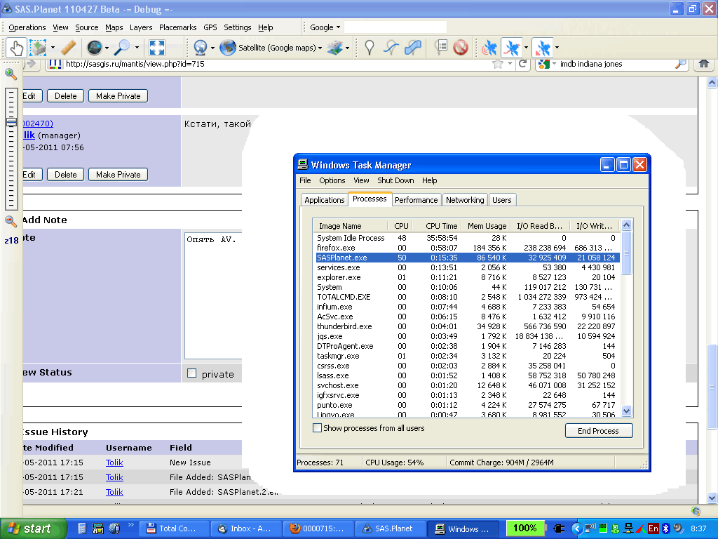 > SASPlanet.4.elf получен при AV? Уже не помню. Судя по его содержимому - нет. > А всё что касается AV предлагаю перенести в баг 0000568 (связи между AV и Memory Leak не наблюдается). Раз не наблюдается, тогда конечно. |