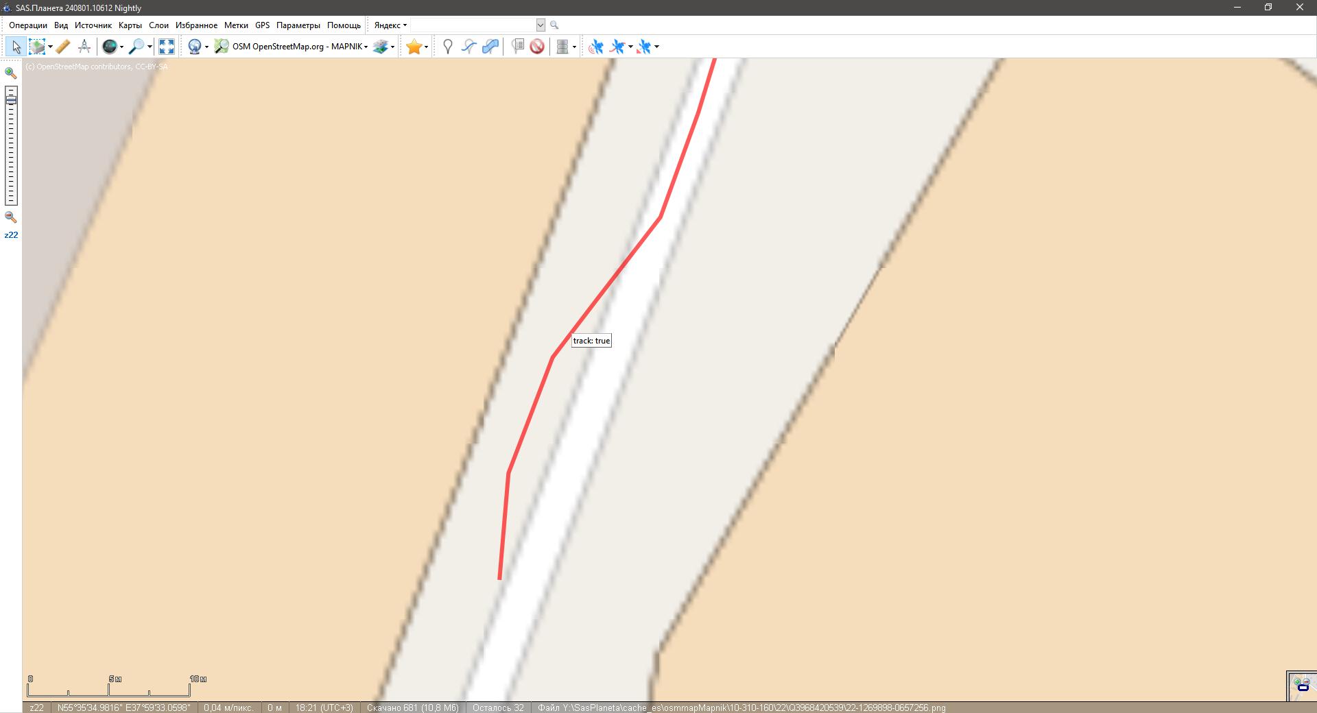 хм... Обновил приложение. При нажатии CTRL и наведении мыши - ничего. При CTRL + щелчок ЛКМ появляется окно снизу. см.скрин Думаю, что должно быть примерно как на sas3. PS Смотрю другой трек - с ним все в порядке, показывает как надо. (картинка sas5). Треки записаны на одном устройстве и одной программой osmand. В GPSMAPEDIT отображается нормально со всеми параметрами, что необходимы для информации. В SAS - я уже указал выше. Не понимаю в чем подвох? PS2 и почему трек из той же группы (та же программа записи, тот же формат и т.д.) отображаются не полностью (картинка sas6), либо вообще без информации? Экспортирую треки из SAS (в один файл), смотрю в GpsMapEdit - все данные отображаются (дата, время, скорость, высота) |