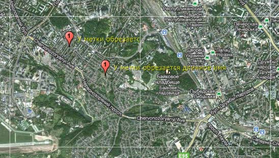 | Description | Если метка находится относительно середины тайла левее, а имя выходит за пределы данного тайла, то имя обрежется по правому краю данного тайла. А если правее, то имя обрежется, только если оно будет выходить за пределы соседнего правого тайла (по его правому краю). Наверное написал не совсем непонятно. Прилагаю картинку. | ||||||||