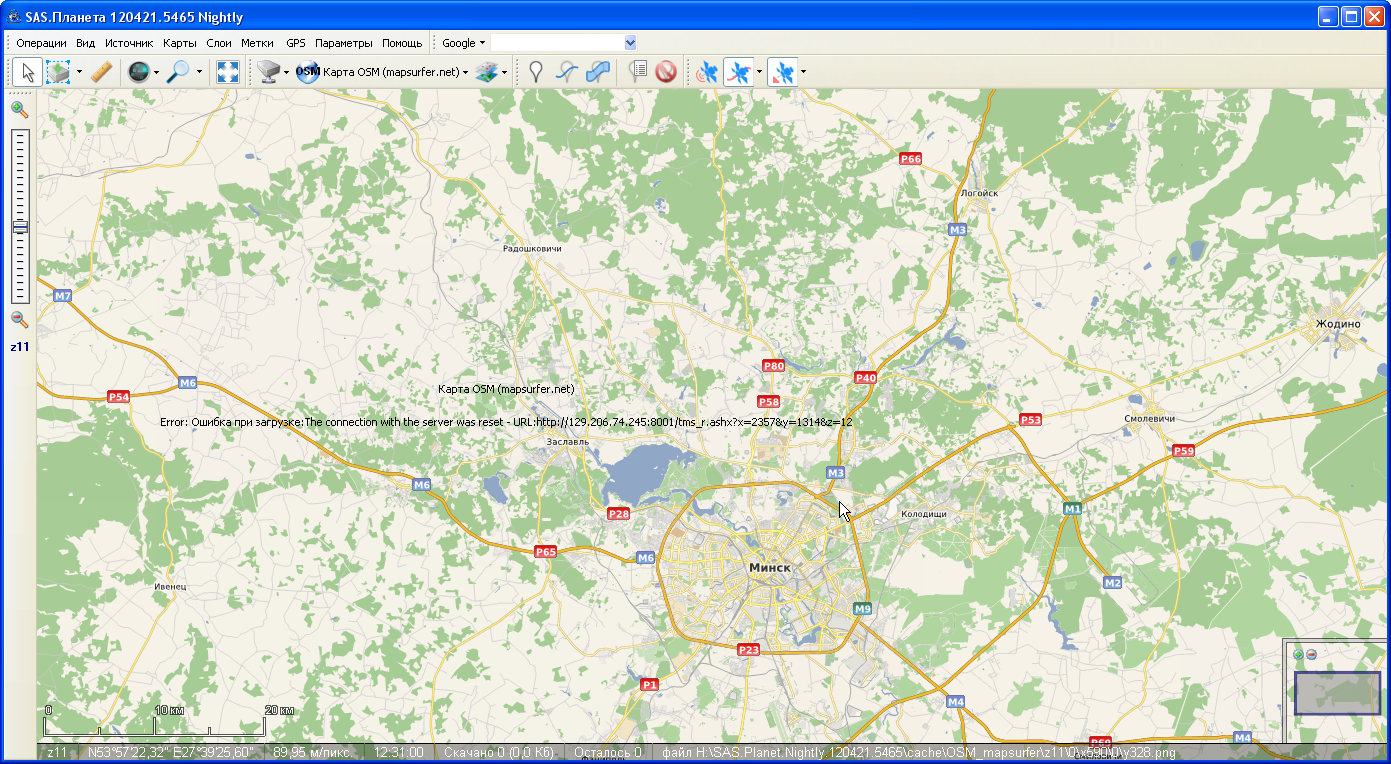 Разумеется, если качать карту, на которой тайлы отсутствуют на сервере, и по каждому такому тайлу открывать новое окно, это будет раздражать. С другой стороны, такое сообщение хорошо видно и на самих тайлах, в принципе, ничего делать с ним не нужно. Но некоторые другие сообщения совсем не прочитать, тем более что они не столь часты. Если бы все возможные сообщения чётко умещались в границах тайла, было бы замечательно. Выводить лог в статусной строке не очень хорошо, так как место там ограничено, и может быть то же самое, что и есть сейчас, то есть сообщения будут обрезаться. К тому же существующая система позволяет привязать сообщение к конкретному тайлу, а как быть со статусной строкой? В общем, на мой взгляд, нужно сообщения оставить в тайлах, как-то их отцентровать, чтобы были полностью видимы, и убирать только при сдвиге карты мышью. |