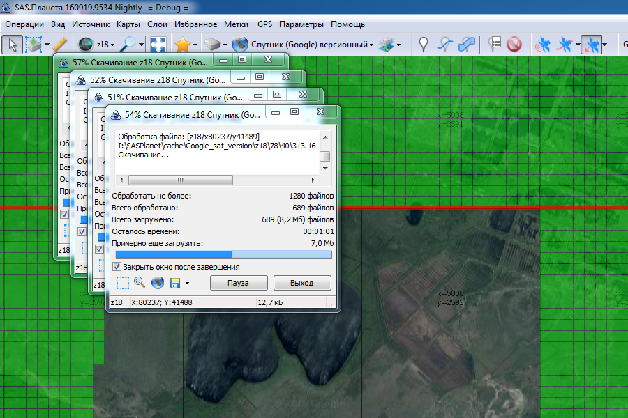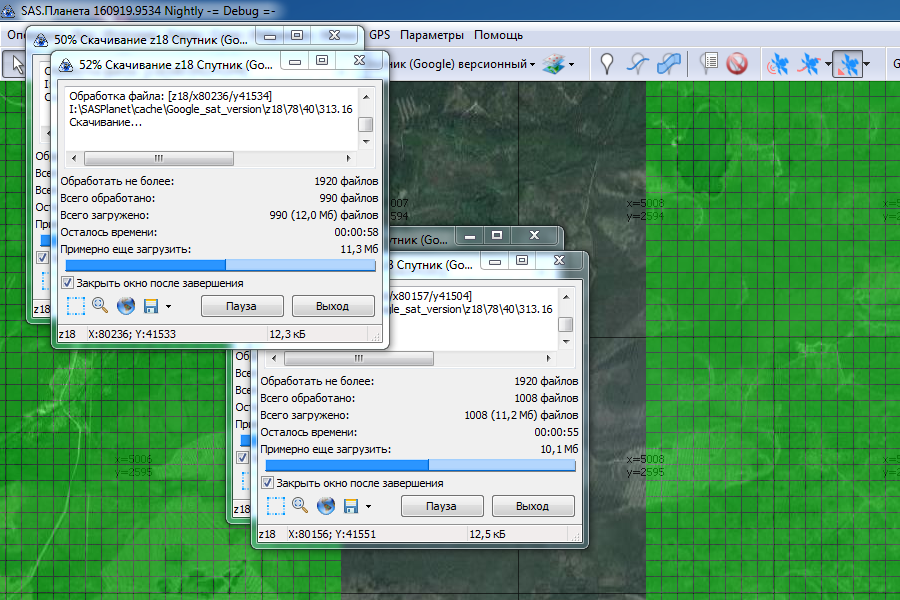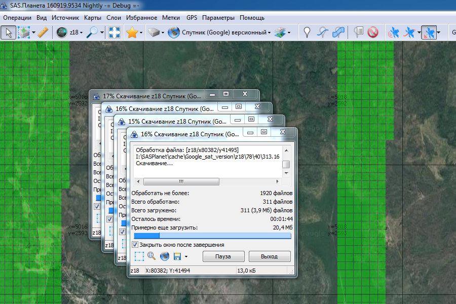 | Description | При включенной опции разбиения выделенной области на части создаётся некоторое количество окон загрузки, которые располагаются на экране весьма причудливым образом. Иногда они аккуратно накладываются друг на друга с одинаковыми смещениями, иногда смещения получаются гораздо бОльшими, и тогда некоторые из окон налазят на тулбар. В последнем случае при необходимости воспользоваться каким-либо инструментом приходится сдвигать несколько окон.